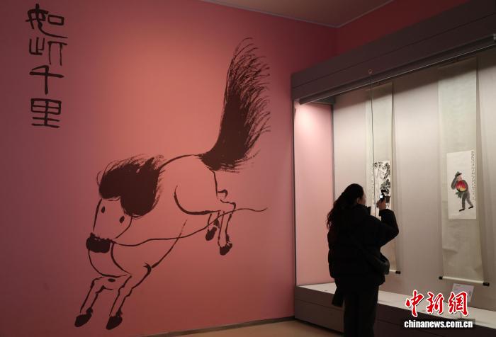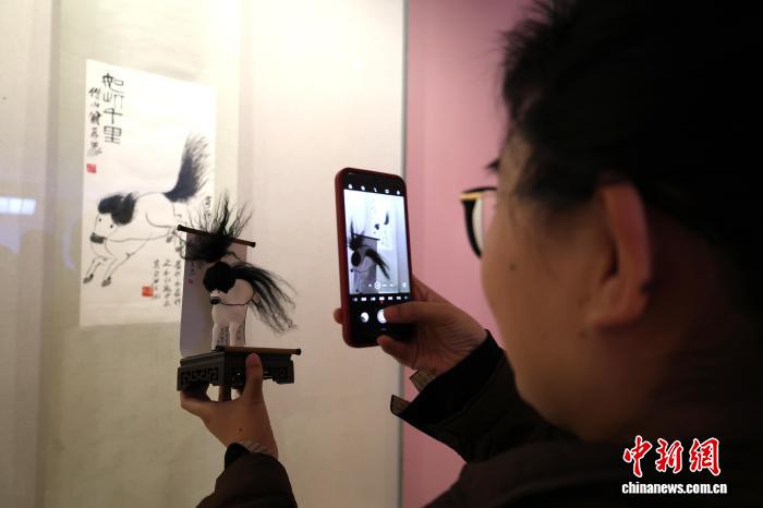 中新网济南2月13日电(记者 赵晓)由北京画院珍藏的齐白石《十二属图》13日正式亮相山东美术馆“学我者生——齐白石与山东弟子”特展。展览现场,“网红”文创“马彪彪”与原作《如此千里》同框展出,令观众得以直观领略齐白石IP的创意转化路径。